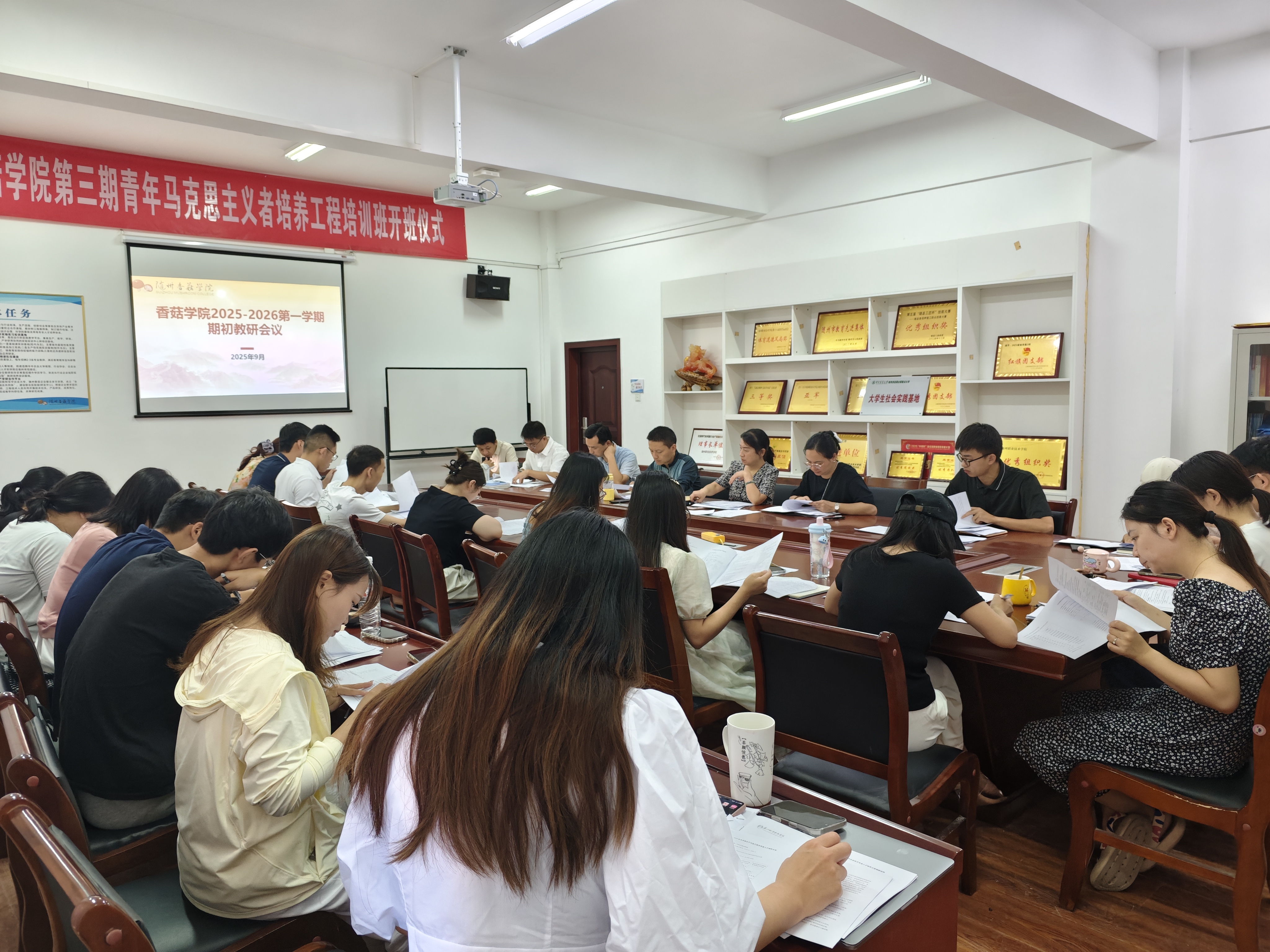 2025年9月2日上午8:30,香菇学院2025–2026学年第一学期期初教研会在随州职业技术学院霞客楼5304会议室顺利召开。本次会议以“人才培养方案解读与学习”为主题,为新学期教学工作的开展指明了方向。会上,各教研室主任分别领学了2025级人才培养方案,帮助全体教师深入理解其核心内容与要求。随后,教学办公室副主任杨渤文就课程标准及课程设计方案的撰写进行指导,强调各项教学文件的制定须严格依据人才培养方案。香菇学院副...
