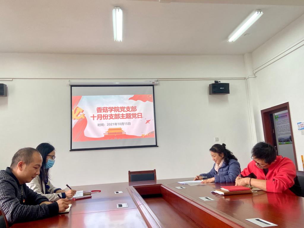 2021年10月15日下午,香菇学院党支部在3楼会议室开展了10月主题党日活动,这是自香菇学院党支部成立以来的第一次集体政治生活,会上党员们就今年的党史学习、主题教育学习计划做了讨论,并集中观看了纪录片《岁月如歌》。