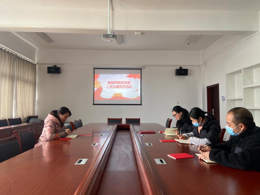 2022年2月21日下午,香菇学院支部在3楼党员活动室开展2月份支部主题党日活动。