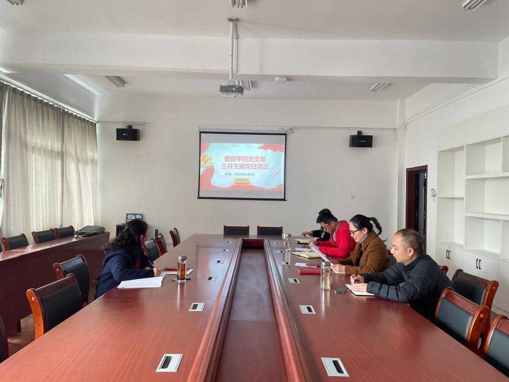 2022年3月4日下午,香菇学院支部开展3月份支部主题党日活动,会上,3月份过政治生日党员袁烽同志带领大家重温入党誓词。