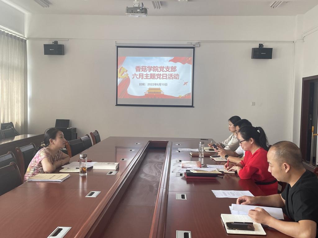 2022年6月10日,香菇学院支部开展6月份支部主题党日活动,学校党委委员、副校长童加斌同志以普通党员的身份参加了此次支部主题党日活动。