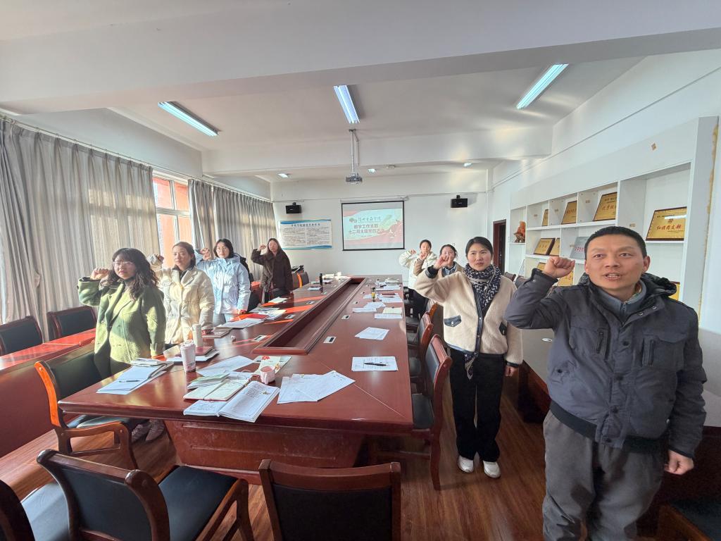 活动伊始,全体党员在张欢同志带领下重温入党誓词,并为当月过“政治生日”的党员同志赠送政治贺卡,强化党员身份意识与组织观念。在集中学习环节,支部重点组织学习了习近平总书记近期重要讲话精神、省委十二届十一次全会精神,并围绕《习近平谈治国理政》第五卷中“中国式现代化”相关篇章开展深入研讨,与会党员结合教育教学实际,交流了将党的创新理论融入课堂、推动育人方式改革的思考。会议还开展了廉政警示教育,引导党员教师筑牢思想防线。