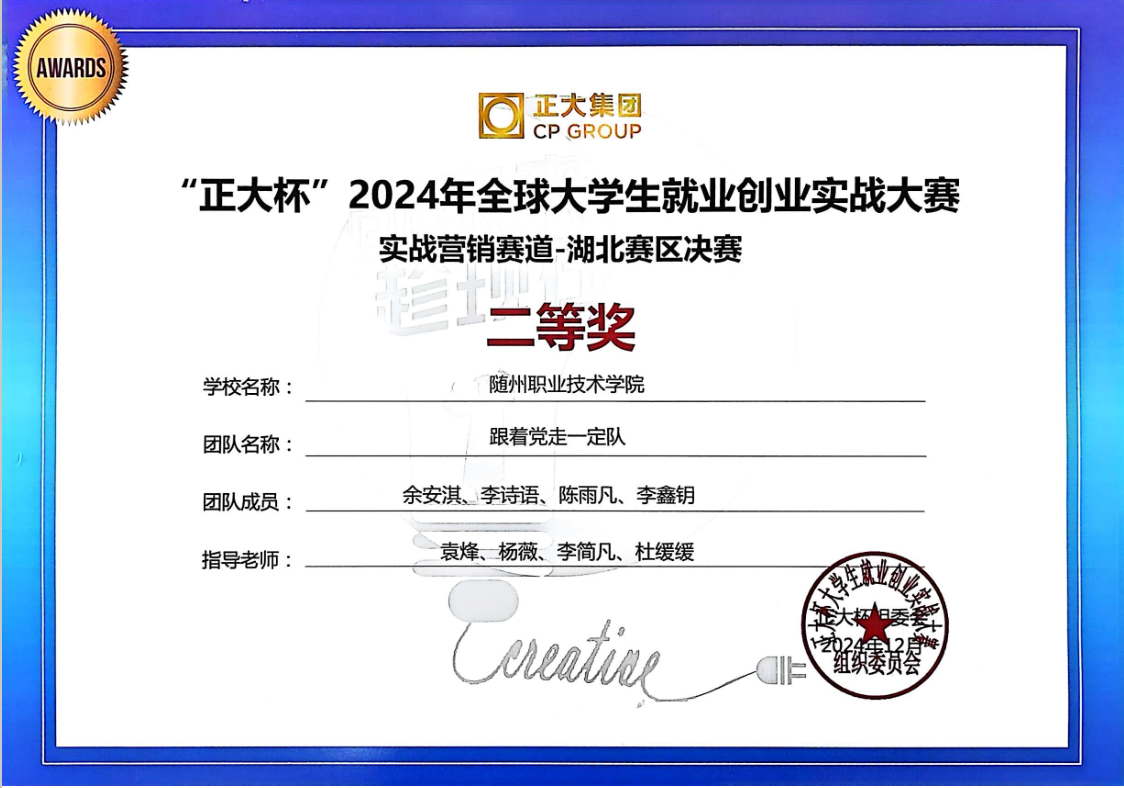 香菇学院“跟着党走一定队”在正大杯湖北赛区总决赛荣获二等奖。