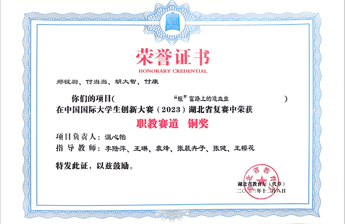 香菇学院在中国国际大学生创新大赛湖北省复赛中荣获铜奖。