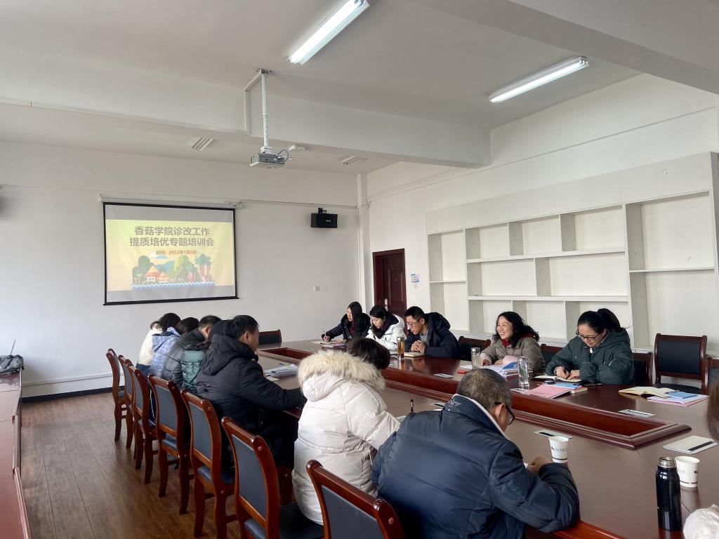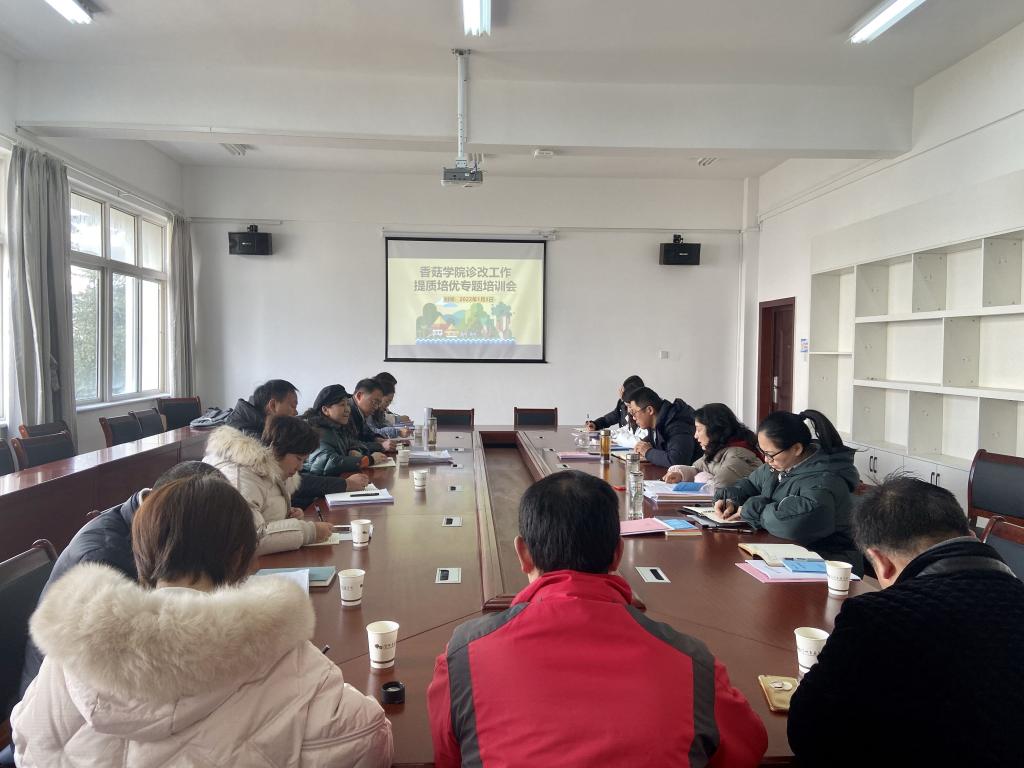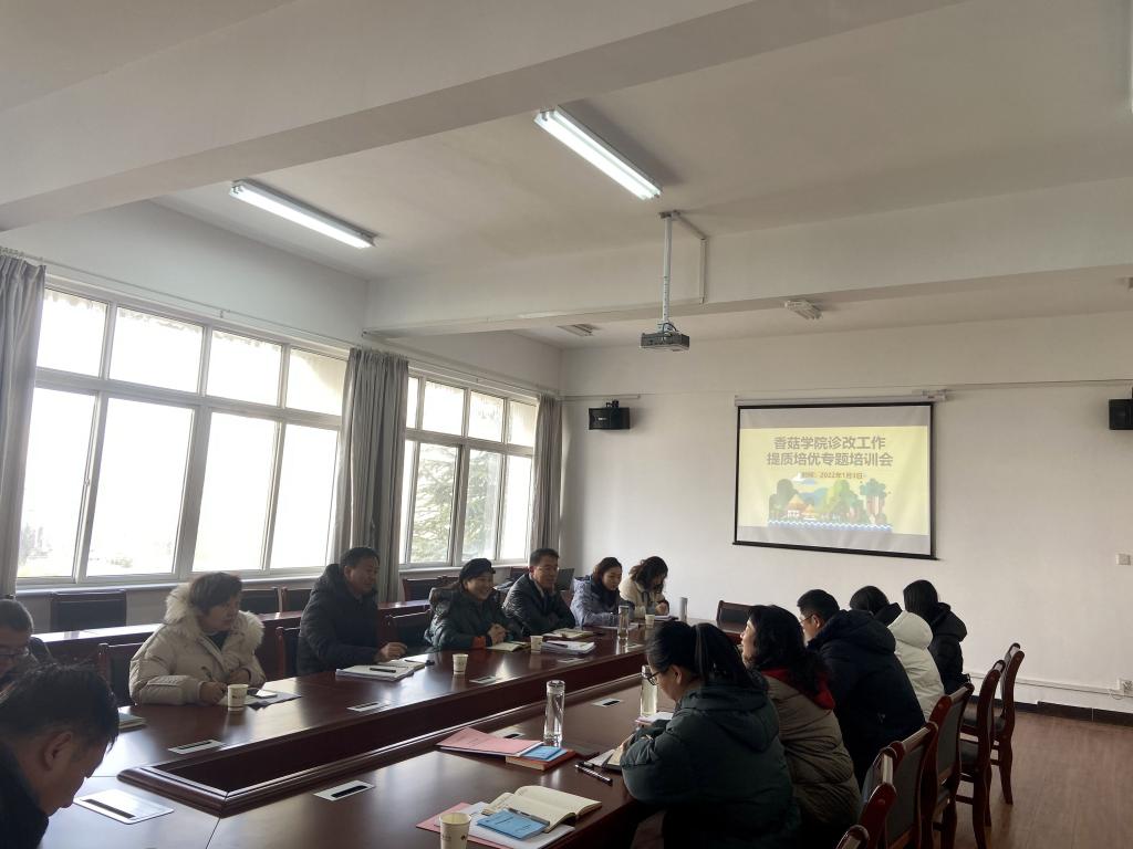 2022年1月3日上午,为了进一步提高教师的教学管理能力,促进诊改及提质培优工作的开展,香菇学院特邀请学校教务处、质量处的相关领导及工作人员为全体教师进行专题培训,培训内容围绕学院的诊改工作技巧,近期提质培优项目的解读展开。会上,学校教务处雷处长提出了香菇学院要建设高水平专业群项目,于处长对产业学院的发展提出了求特创新、质量为先的要求,质量处肖处长着眼香菇学院实际,进一步解读了内部质量保证体系。通过培训,教师们对下一步的工作有了新的认识和计划。