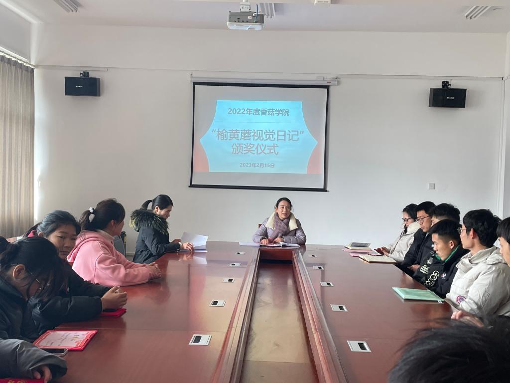 2023年2月15日,香菇学院在霞客楼5304举办“榆黄蘑视觉日记”比赛颁奖仪式,颁奖仪式由教学办主任张健主持。参会人员有执行院长王琳,党总支副书记吴冉冉,各科室成员以及香菇学院2022级全体学生。