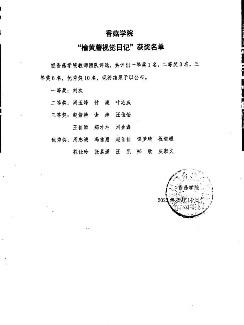 据悉,本次大赛从2022年11月初正式拉开帷幕,22级学生的作品全部接收,评选出20余份作品。经过教师评审,比赛共评选出一等奖、二等奖、三等奖、优秀奖等奖项。参赛个人通过视频传递出他们“眼中的榆黄蘑”,参赛作品以视频的方式展示,视频长度3分钟左右,包括图片+文字解说+影音等元素,内容从领到榆黄蘑菌包开始到采收结束的各个过程。