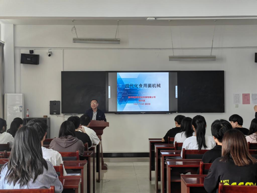 6月16日下午3点,我院邀请随州菇鲜美现代农业发展有限公司技术总监杨守波,在霞客楼5603举办了主题为“现代化食用菌机械”的专题讲座,主要介绍了现代化食用菌机械生产、规模化、工厂化发展现状以及发展方向。教学办主任张健主持。