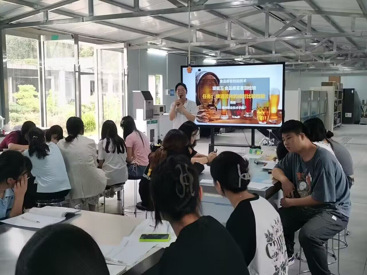 为加强职业教育教学活动中学生实践动手能力,9月20日上午,香菇学院2021级绿色食品生产技术1班同学在食品实训室开展了一场生动有趣的啤酒品鉴课。本次实验课主要内容是对啤酒的苦味进行差别检验。学生通过品尝两种不同的啤酒判断其中苦味的差异显著与否。课堂上同学们积极参与实验,课堂氛围十分活跃。上完课,同学们都表示这一堂课既了解了许多与啤酒相关的知识,又对啤酒的味道有了更深的认识。
