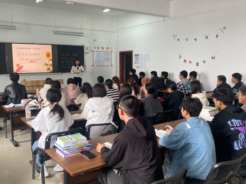 新生上课第一天,学校教学秩序井然,老师们认真负责,热情洋溢;学生们精神抖擞,一丝不苟,课堂气氛融洽。