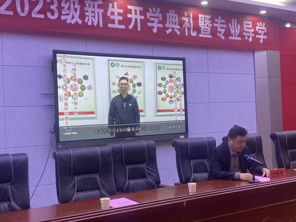 香菇学院院长边银丙在专业导学上发言