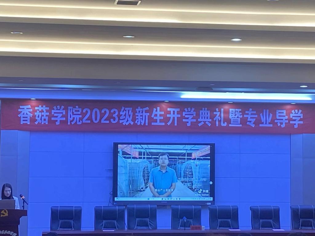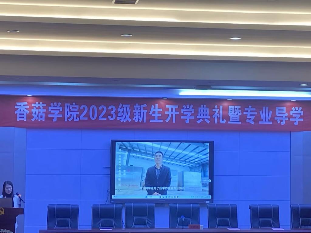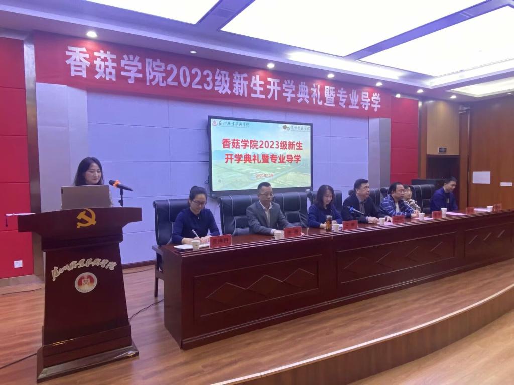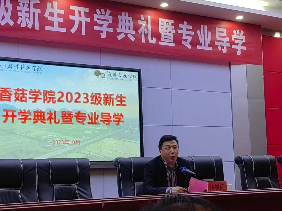 朗朗金秋,丹桂飘香。10月10日上午,香菇学院2023级新生开学典礼暨专业导学在学术报告厅隆重举行。随州职业技术学院教务处处长黄达,华中农业大学教授、博士生导师、香菇学院院长边银丙,香菇学院支部书记、执行院长王琳,华中农业大学教授、博士生导师、香菇学院副院长黄文,香菇学院党支部副书记吴冉冉,品源(随州)现代农业发展有限公司副总经理张涛,随州市食用菌协会夏红军出席典礼。