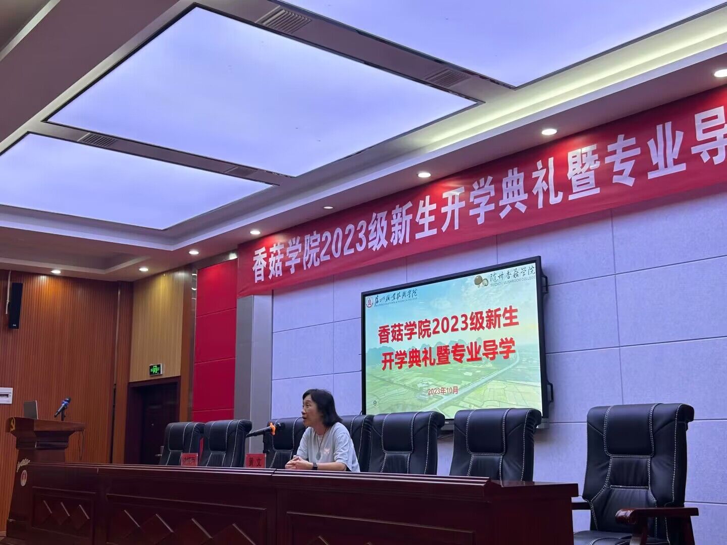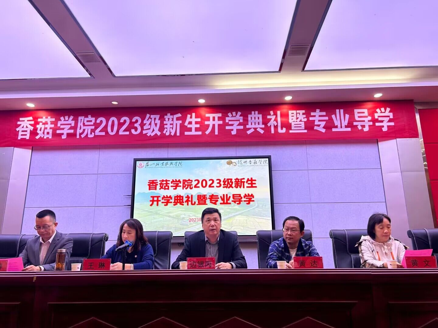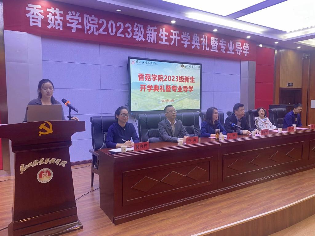 朗朗金秋,丹桂飘香。10月10日上午,香菇学院2023级新生开学典礼暨专业导学在学术报告厅隆重举行。随州职业技术学院教务处处长黄达,华中农业大学教授、博士生导师、香菇学院院长边银丙,香菇学院支部书记、执行院长王琳,华中农业大学教授、博士生导师、香菇学院副院长黄文,香菇学院党支部副书记吴冉冉,品源(随州)现代农业发展有限公司副总经理张涛,随州市食用菌协会夏红军出席典礼。
