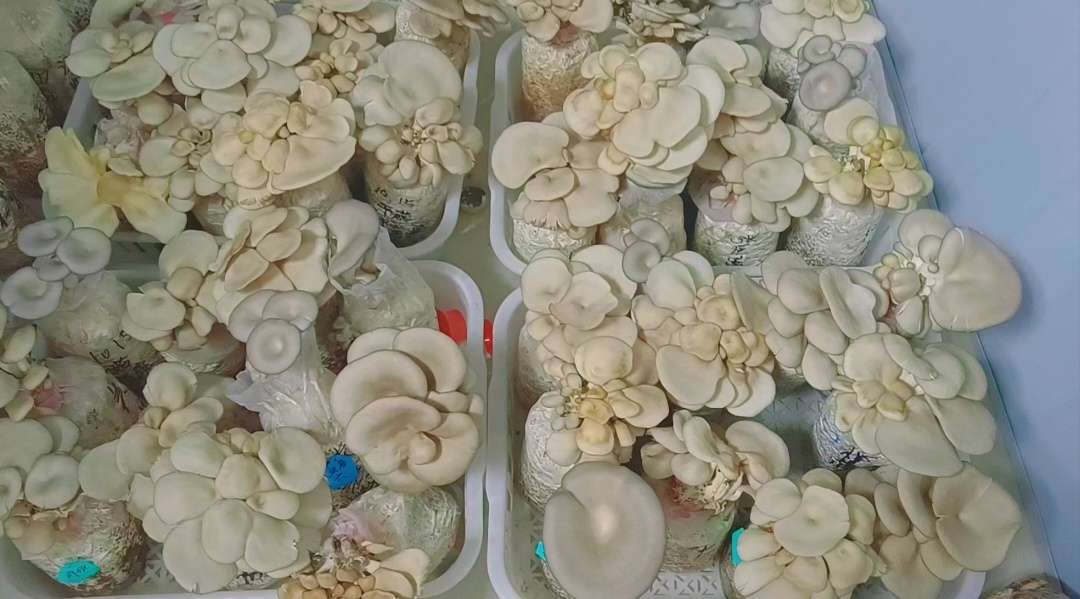 图为平菇大丰收的景象