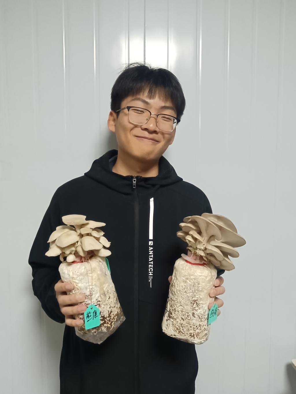 12月1日,在《食用菌栽培学》这门课程中,香菇学院2022级食用菌生产与加工技术专业1班的学生于十月中旬的实训课上接种的平菇均已出菇,学生与老师看到眼前丰收的景象均喜不自胜。