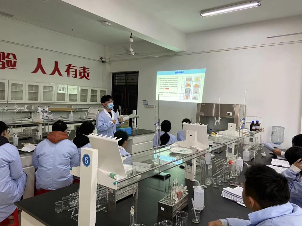 董志雄老师强调了实验实安全第一,从贴近生活的食用油实例入手,讲解了粮油食品发生油脂酸败的原理,借助操作视频帮助学生深入理解测定脂肪酸值的步骤和注意事项。