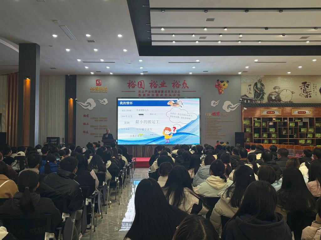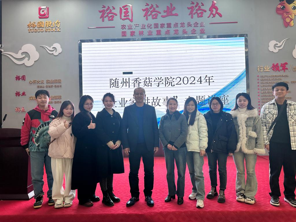 2024年11月27日,香菇学院邀请了湖北裕国菇业股份有限公司董事长雷于国,为全体师生们带来了一场精彩的“企业家讲故事”专题讲座,雷于国讲述了自己如何从一名最小的搬运工成长为一名香菇大王,分享了自己艰苦奋斗、努力创业的故事,他的经历激励了在场的学生们,同时让他们看到香菇等食用菌产业的无限可能。
