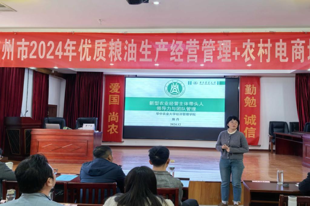 2024年12月2日,在本次2024年优质粮油生产经营管理+农村电商培训班中,由随州职业技术学院香菇学院承办方邀请的华中农业大学经济管理学院的施丹教授,来为农民带头人们开展了关于“新型农业经营主体带头人,领导力于团队管理”这一门课程。