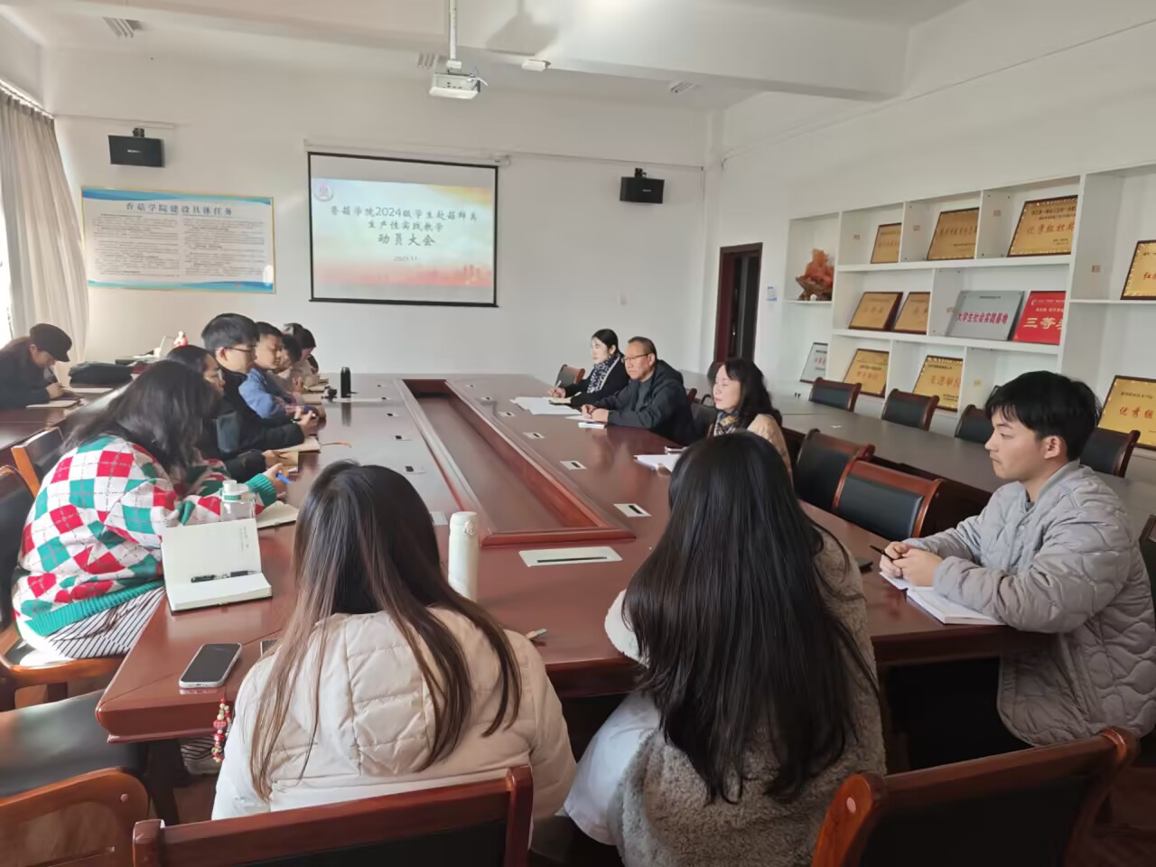 会上,学院领导首先强调了实践教学对夯实专业群建设、衔接未来实习就业的重要意义。企业指导教师就智能化制棒、接种等核心实训内容进行了介绍。教研室主任随后详细部署了具体安排:明确分班轮换、每日两名教师跟队的管理机制,强调了实践记录表填写、实训报告每日批改、心得体会撰写等学习任务,并重点要求学生遵守安全纪律,展现学院良好风貌。