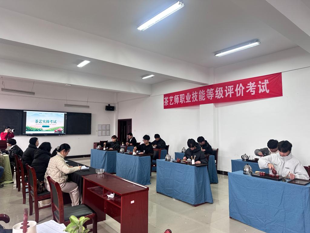 2025年12月23日,香菇学院2025年茶艺师职业技能竞赛暨《初级茶艺师》职业技能等级评价考试顺利举行。本次活动以检验24级学生本学期《茶文化与茶艺》课程学习成果为核心,通过“竞赛+评价”双轨模式,对学生理论素养与实操技能进行全方位考核,通过考核的学生将获颁由人力资源和社会保障局认证的初级茶艺师技能证书。这一举措既是香菇学院深化产教融合、推进“岗课赛证”融通育人的生动实践,也标志着学院与神农茶业联合开展的特色课程育人成效迎来集中检验。