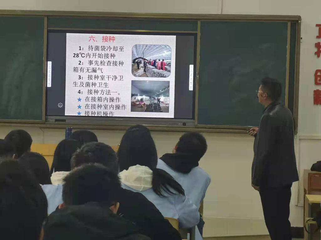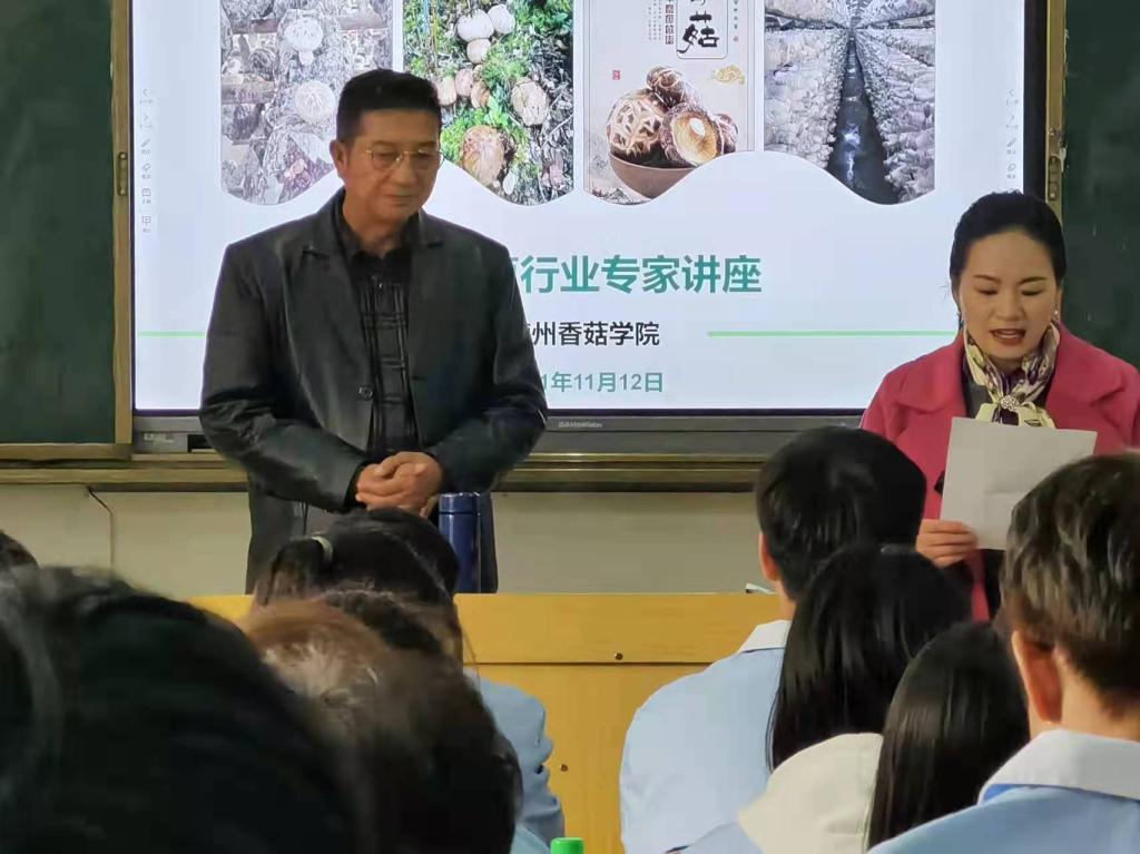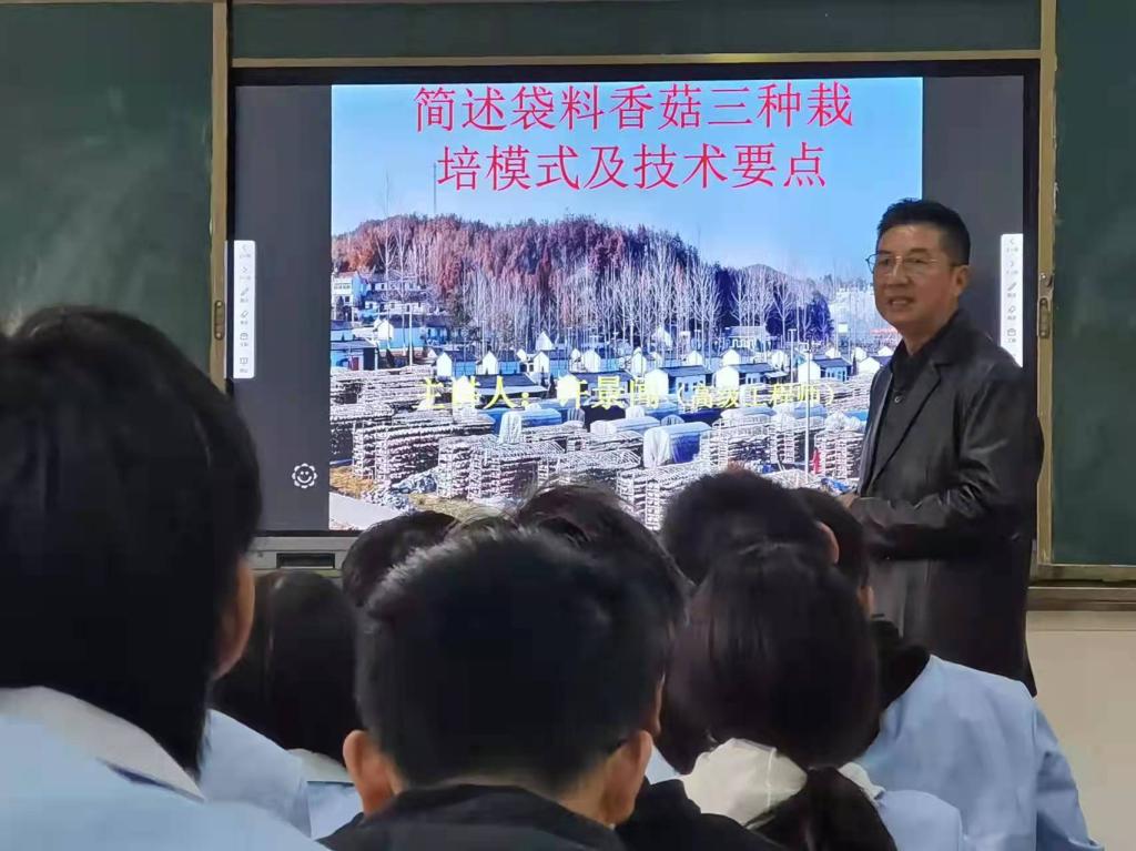 为了让学生更多的了解食用菌行业,11月12日下午,香菇学院邀请随州市食用菌协会许景闻会长到校开展专题讲座,讲座内容围绕着袋料香菇的栽培环境及技术要点展开,内容丰富,贴合实际。