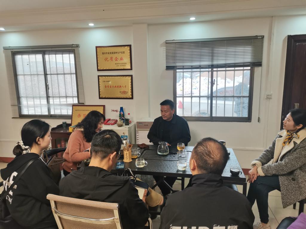 3月14日下午,香菇学院院长王琳等一行6人,到随州市宝蕈农业科技有限公司进行实地走访调研。宝蕈农业科技有限公司总经理靳明兵、技术指导刘毓等参与了交流活动。