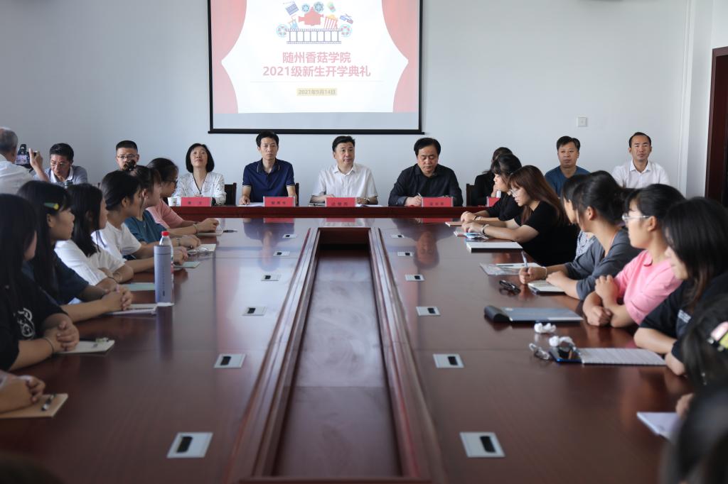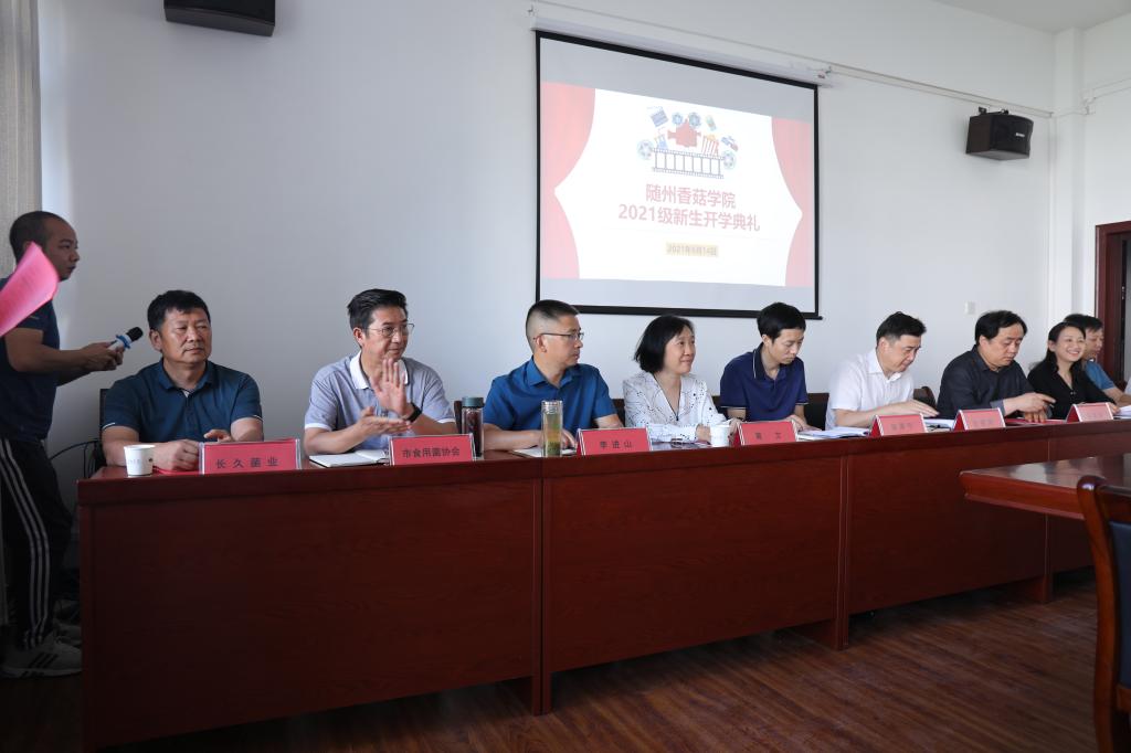 2021年9月14日,随州香菇学院2021级新生开学典礼在随州职业技术学院霞客楼3楼会议室隆重举行,出席开学典礼的有随州职业技术学院梁院长、邹院长,香菇学院边院长、王院长、黄院长、李院长以及行业协会人员和企业家代表。