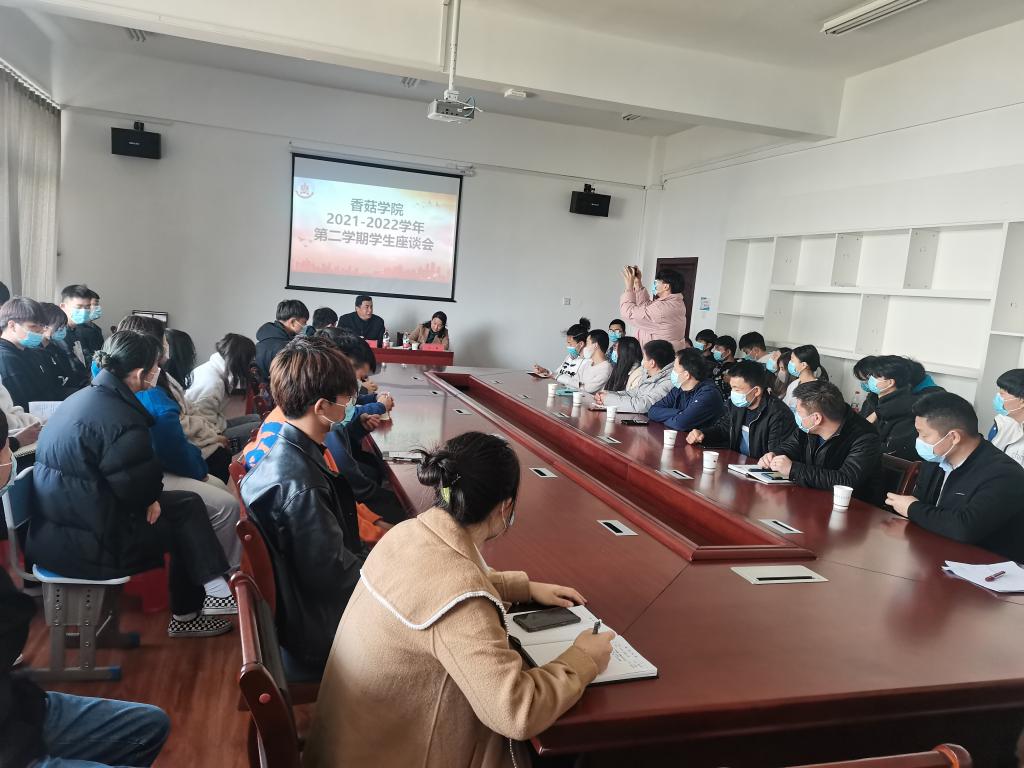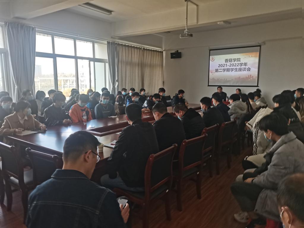 2022年3月3日上午,香菇学院在霞客楼3楼会议室召开了“2021—2022年第二学期学生座谈会”,21级绿色食品专业3个班同学参加此次会议,会上边银丙院长和王琳院长围绕同学们的一系列提问展开了座谈。