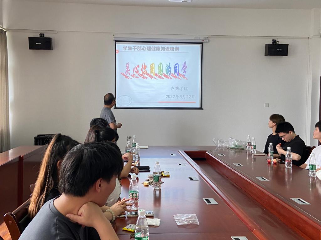 为继续做好我院心理健康教育工作,5月22日下午5点,香菇学院在霞客楼会议室召开学生干部心理培训会,以切实关爱大学生身心健康为原则,不断提高学生朋辈心理辅导的作用。全体学生干部和各班寝室长参会。