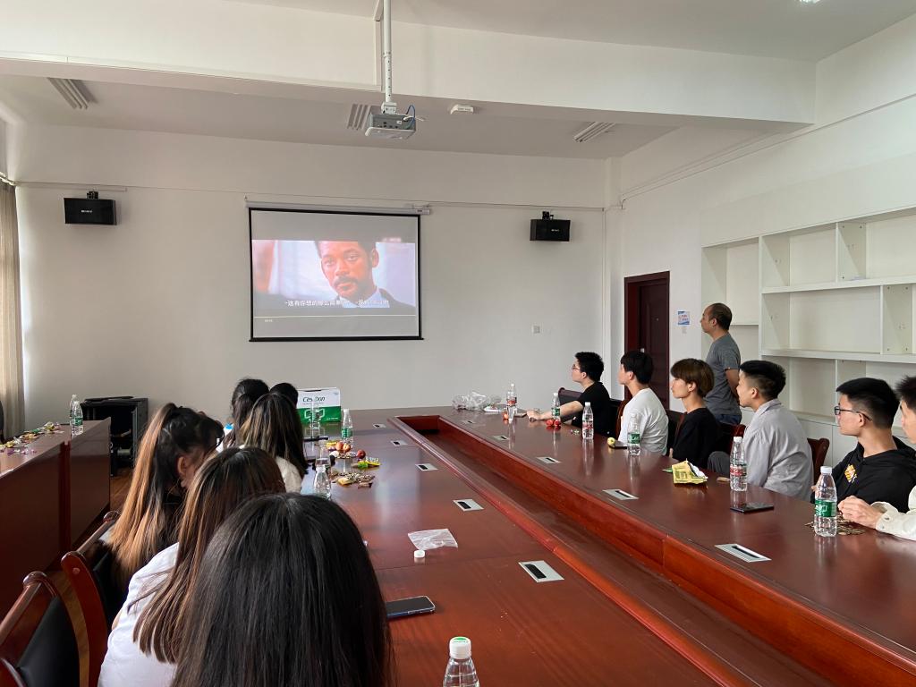 最后,以《当幸福来敲门》节选片段结束,跟同学们讲述了“我们不知道幸福什么时候会来临,但我们可以用我们自强的双手敲开幸福的门”。