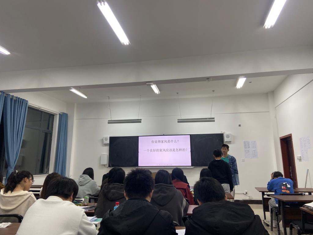 为让我院学生更深一步了解中华民族优良的名族之风;知晓家训、家规、家风的重要性,增强学生爱国爱家主义情感,激励学生立志努力学习。10月9日晚,香菇学院各班召开了主题班会。