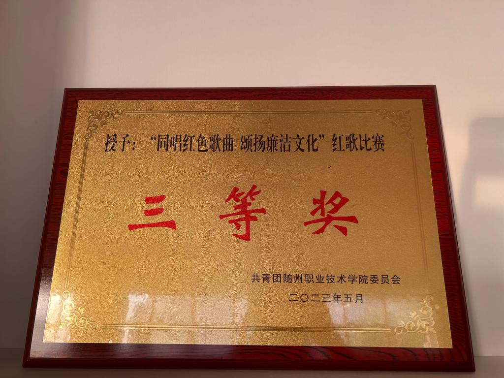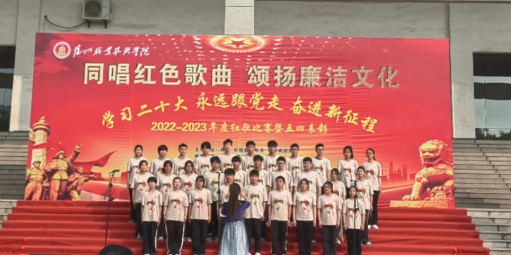 2023年5月11日为贯彻落实党的二十大精神,激发学生爱国情怀,展示学生良好的精神风貌,香菇学院参加学校举办的“同唱红色歌曲,颂扬廉洁文化”红歌比赛暨2022-2023年度五四表彰,并获得了红歌比赛三等奖。