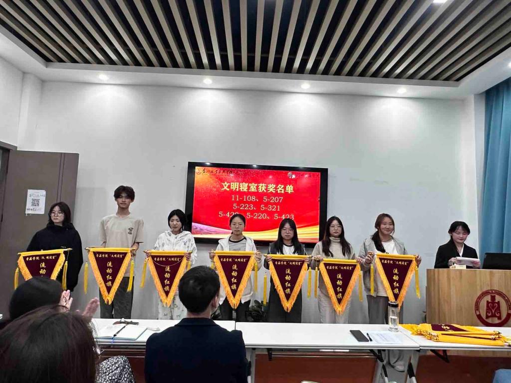 4月16日我院依托一站式学生社区,在党团工作站举办3月“榜样之星”暨文明宿舍班级及“挑战杯”颁奖典礼。学院党总支副书记吴冉冉出席并致辞。