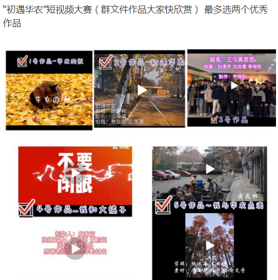 2021年12月10日为丰富学生在华中农业大学学习生活,缓解紧张的学习压力,香菇学院组织了一次有意思的团建活动——“初遇华农”短视频拍摄活动,全体老师和学生认真组织并投票选出优秀作品。