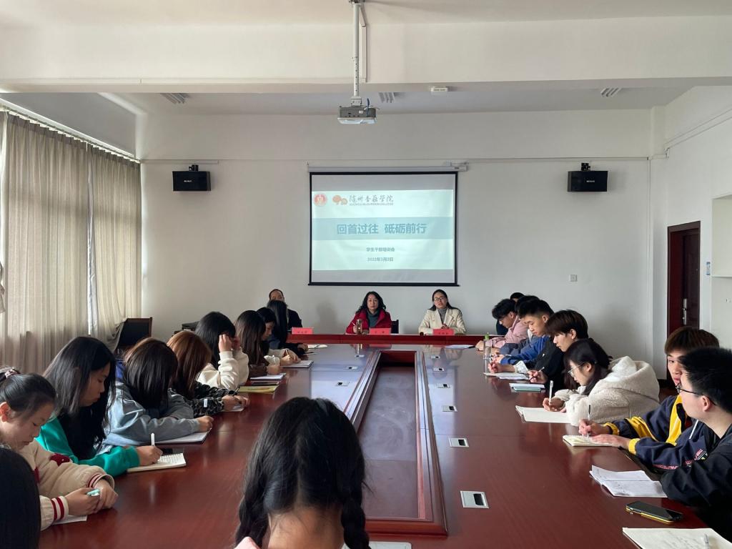会上,学工办刘主任带领大家重温各学生干部岗位职责,并对这学期的学生工作规划进行了解读。院办吴主任就担任学生会干部的意义与宣传工作如何开展进行了指导性培训,教科办袁主任对新学期学习氛围的营造及养成良好的学习习惯提出了明确的要求。
