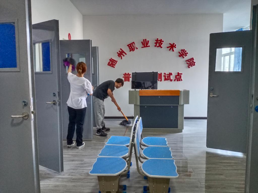 为保障随州职业技术学院普通话水平测试顺利进行,给考生们创造一个良好的环境,2022年5月4日,香菇学院志愿者组织开展了对测试室的卫生打扫活动。