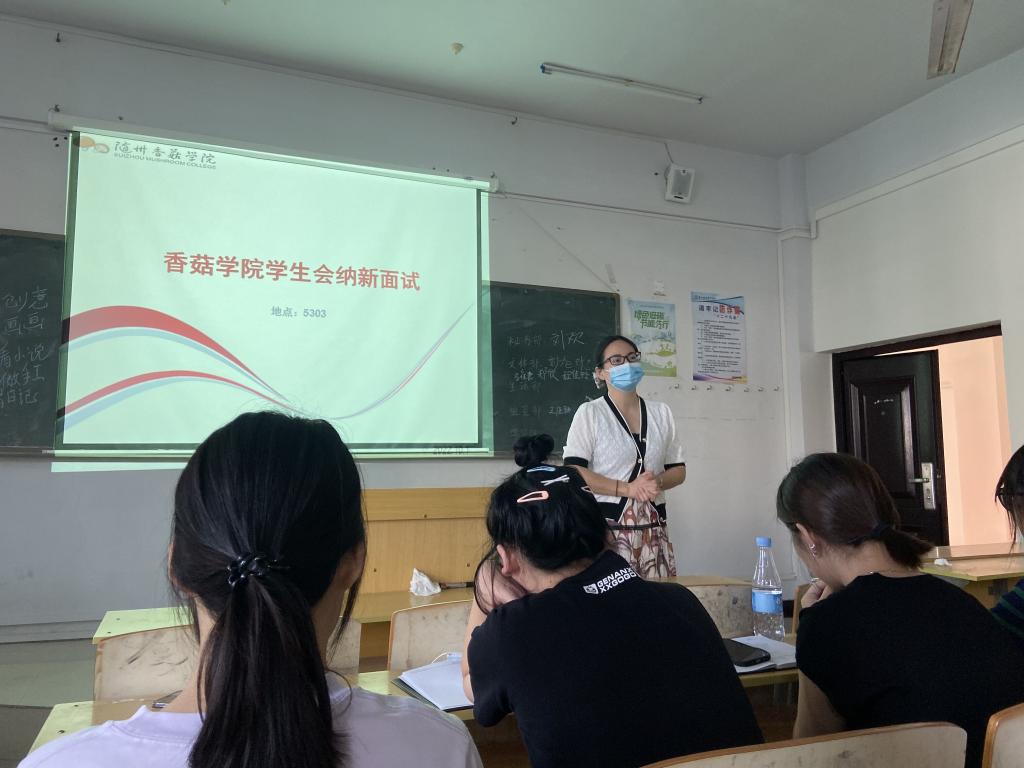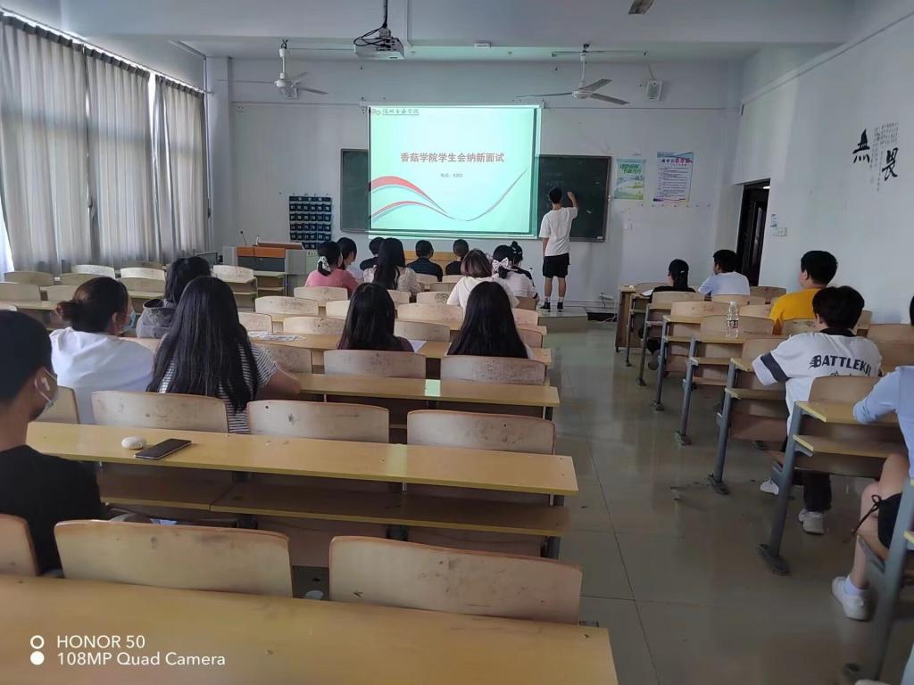 10月1日下午15点30分,香菇学院团总支学生会招新面试工作在霞客楼5303多媒体教室顺利进行,并得到了2022级新生的积极响应,同学们纷纷上台讲述了自己加香菇学院团总支学生会的畅想,如何团结同学,策划活动,丰富大学生活。