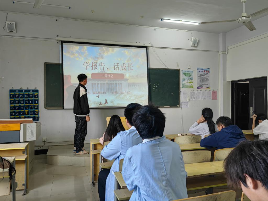 2023年3月16日,香菇学院22级、21级学生在5303开展“学报告、话成长”主题班会活动,首先由团支书带领所有同学学习二十大报告精神,再由同学们互相交流学习,分享学习心得。