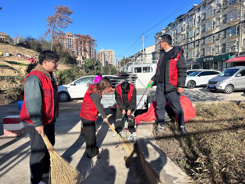 2024年11月29日,随州职业技术学院香菇学院办公室主任袁烽、团总支负责人李简凡及教师陈思逸带领4名学生志愿者,走进了随州前进社区居民委员会,开展了一场别开生面的环境清扫志愿活动。