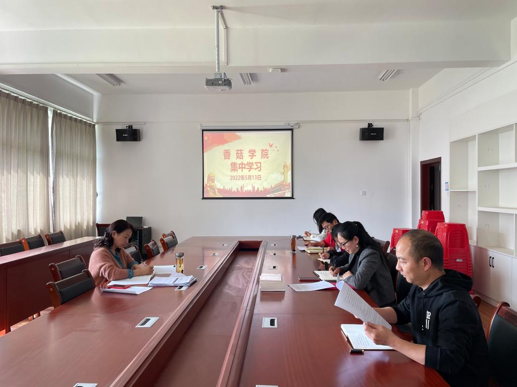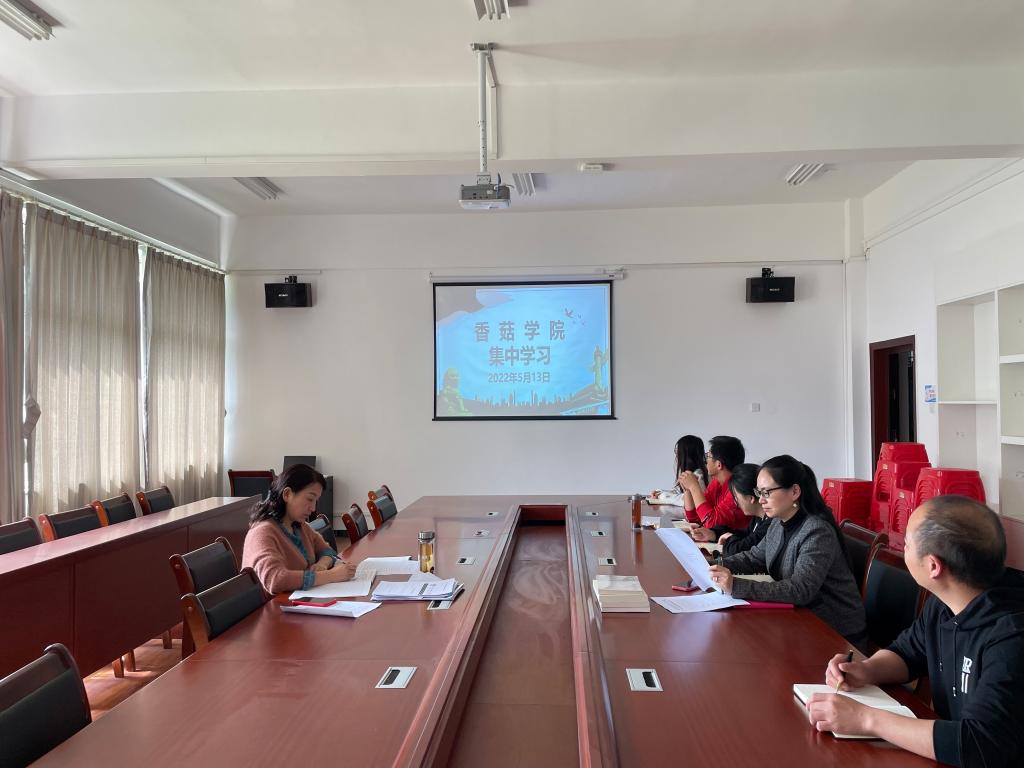 2022年5月13日,香菇学院按照党委中心组学习内容要求减排,组织全体教师开展集中学习,学习内容包含:习近平总书记关于马克思主义中国化、时代化的重要论述;习近平总书记关于中国式现代化道路的重要论述;国务院安委会制定部署安全生产十五条措施 进一步强化安全生产责任落实 坚决防范遏制重特大事故;中华人民共和国反有组织犯罪法。