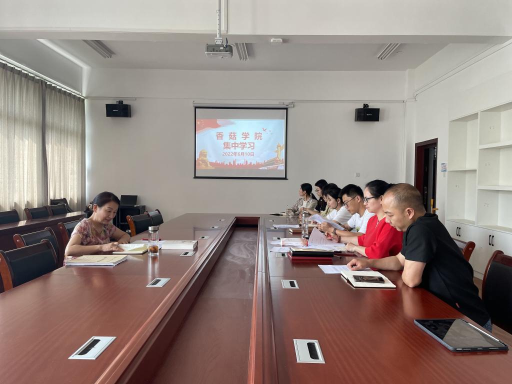 2022年6月10日,香菇学院按照学校党委中心组学习内容及日常学习要求,组织全体教师开展6月份集中学习,学习内容包括: