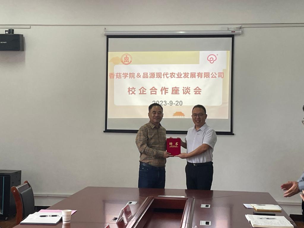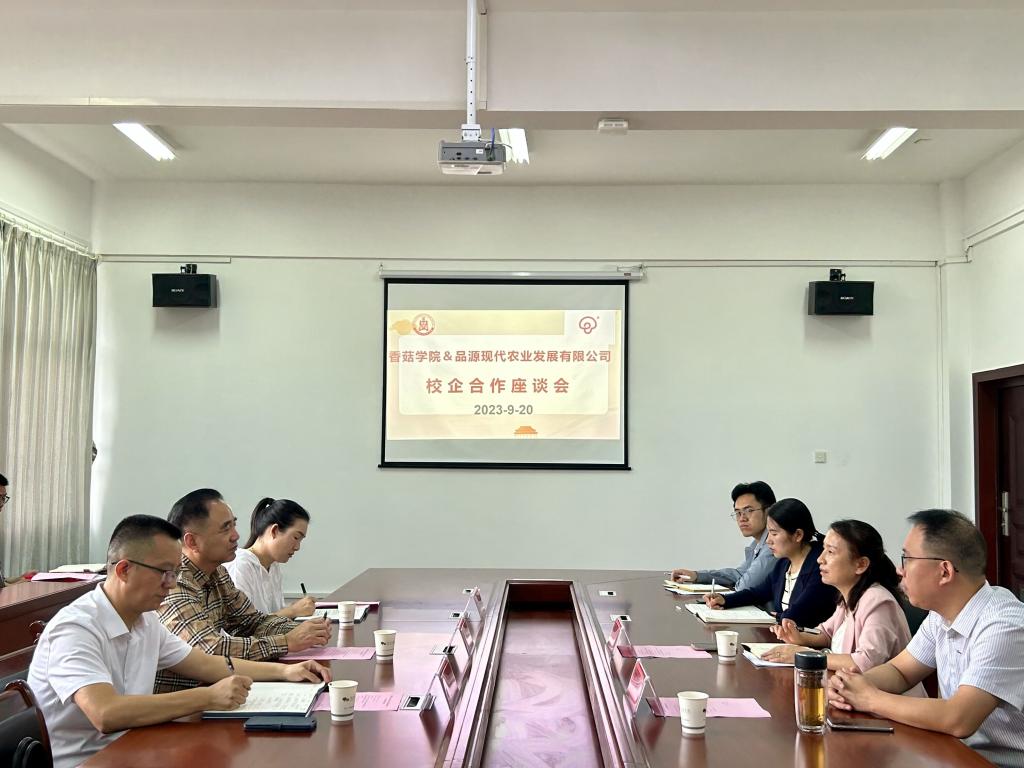 2023年9月20日上午,品源(随州)现代农业发展有限公司总经理罗学品、副总经理张涛、人力资源主管宋薇薇一行到香菇学院开展校企合作座谈会。