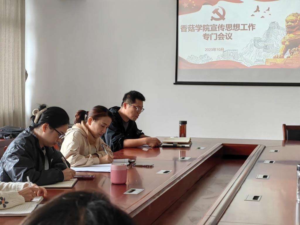 执行院长王琳主持会议。香菇学院全体教师参加了此次宣传教育专门会议。