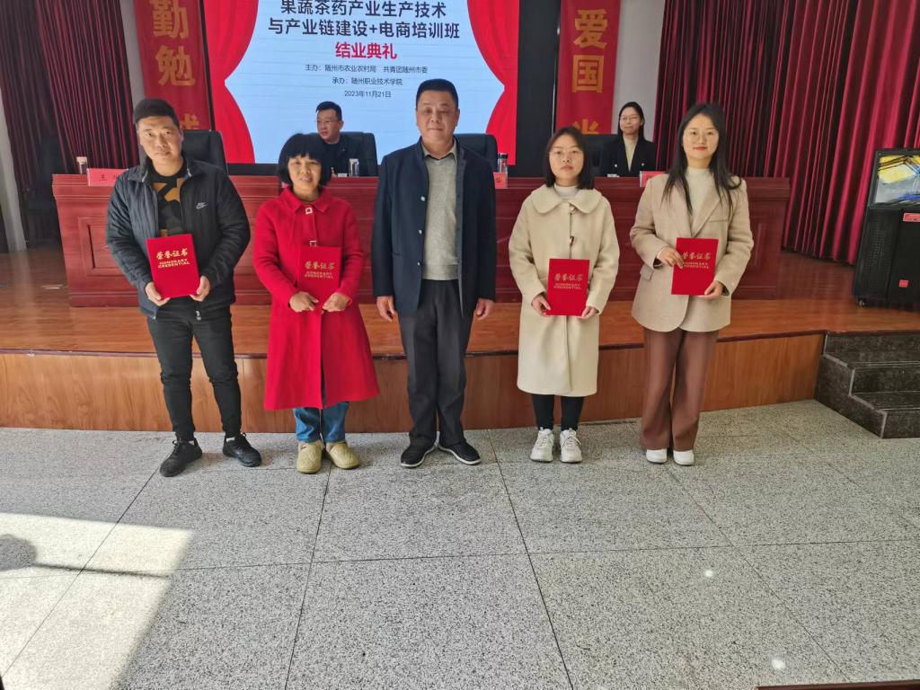 2023年11月21日,果蔬茶药产业生产技术与产业链建设+电商培训班圆满落幕。本次培训班由市农业农村局、共青团随州市委主办,随州职业技术学院香菇学院承办。