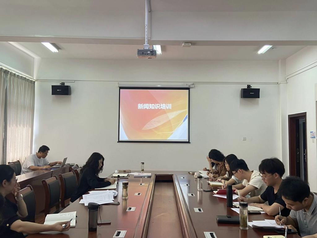 香菇学院党总支书记、执行院长王琳主持会议。办公室主任袁烽作新闻宣传工作培训,全院教师参加培训。