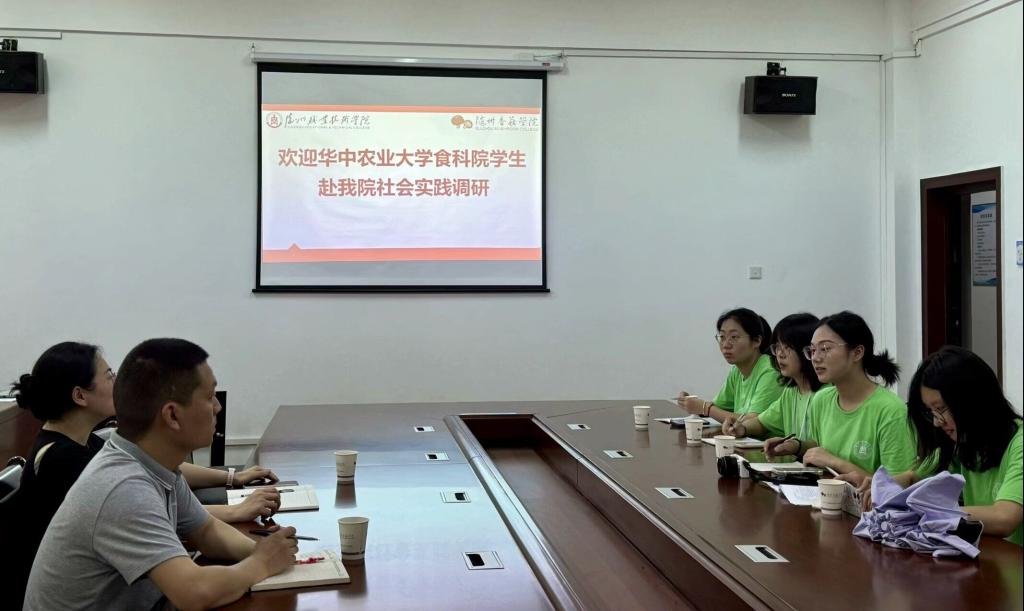 7月12日下午,华中农业大学食品科学技术学院暑期社会实践团赴我院进行社会实践调研。随州职业技术学院香菇学院党支部副书记吴冉冉、教学副院长张欢对社会实践团的到来表示热烈欢迎。