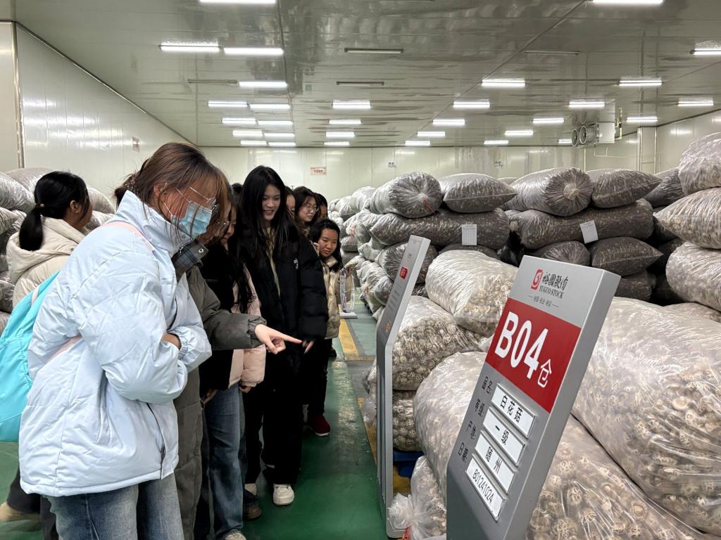 学生们在企业相关部门人员的引导和解说下,着参观通道,走进香菇原料仓库、生产车间、检测中心、智能种植试验基地、生态餐厅等部门,了解香菇种植、加工、检测、营养等知识,感受香菇文化和现代工业文明。在参观过程中,学生们认真聆听企业工作人员的讲解,不时提出自己的疑问和见解,与企业员工进行了深入的交流和互动。