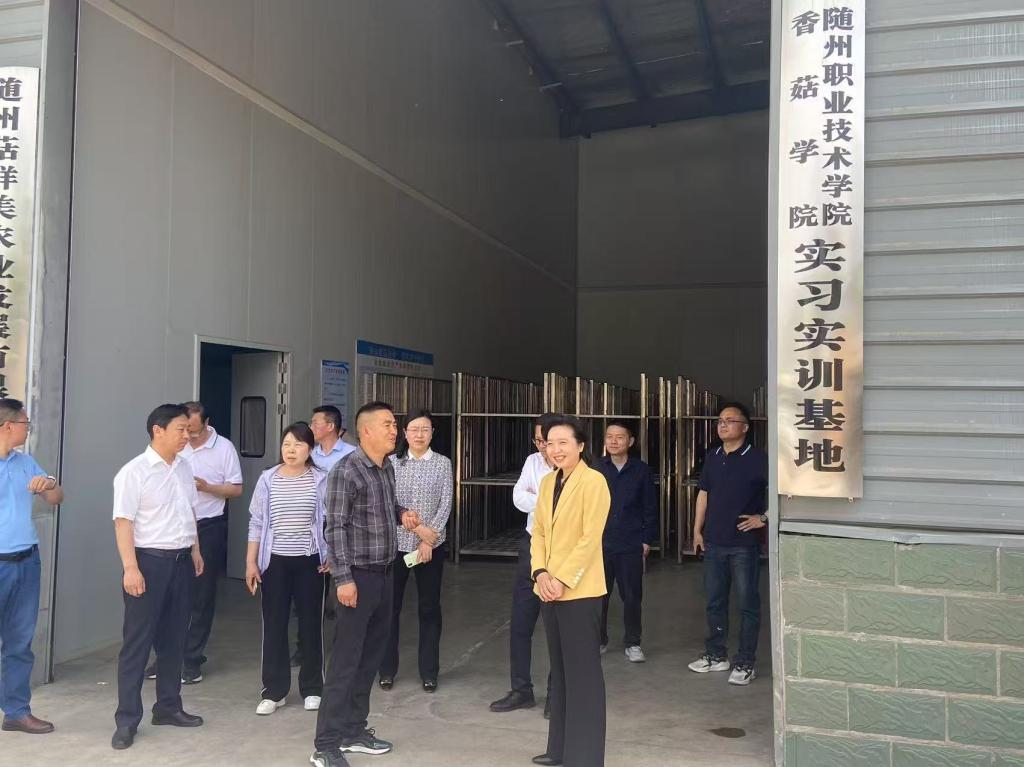 在学院生产性实践教学基地随州菇鲜美农业发展有限公司,调研组视察教学-实践-生产“三位一体”产教融合基地,学院企业导师、公司负责人李逵向调研组展示了香菇学院食用菌专业学生的实践作业。调研组希望学院和相关企业进一步构建随州特色的产教融合职业教育体系,积极打造产教融合、科教融汇的典范。