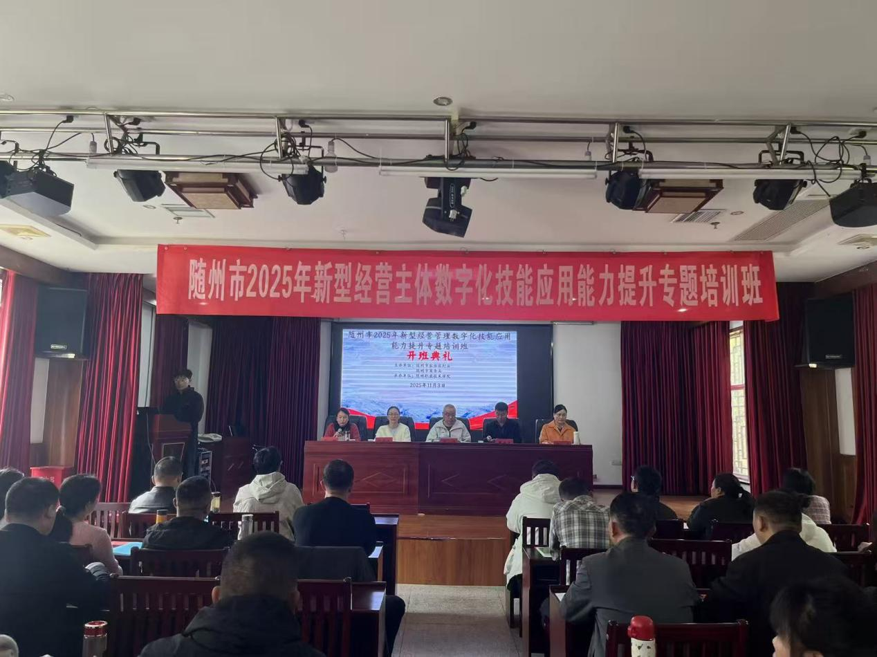“经营主体担使命,数字赋能展新篇”,2025年11月3日,由随州市农业农村局、随州市商务局联合主办,随州职业技术学院承办的随州市2025年新型经营主体数字化技能应用能力提升专题培训班在华夏宾馆隆重开班。本次培训旨在加强乡村人才队伍建设,推进高素质农民培育工程,提升农业生产经营数字化管理及服务,助力农产品品牌打造,以数字化赋能电商助农,为全面推进乡村振兴,加快农业农村现代化提供人才支撑。