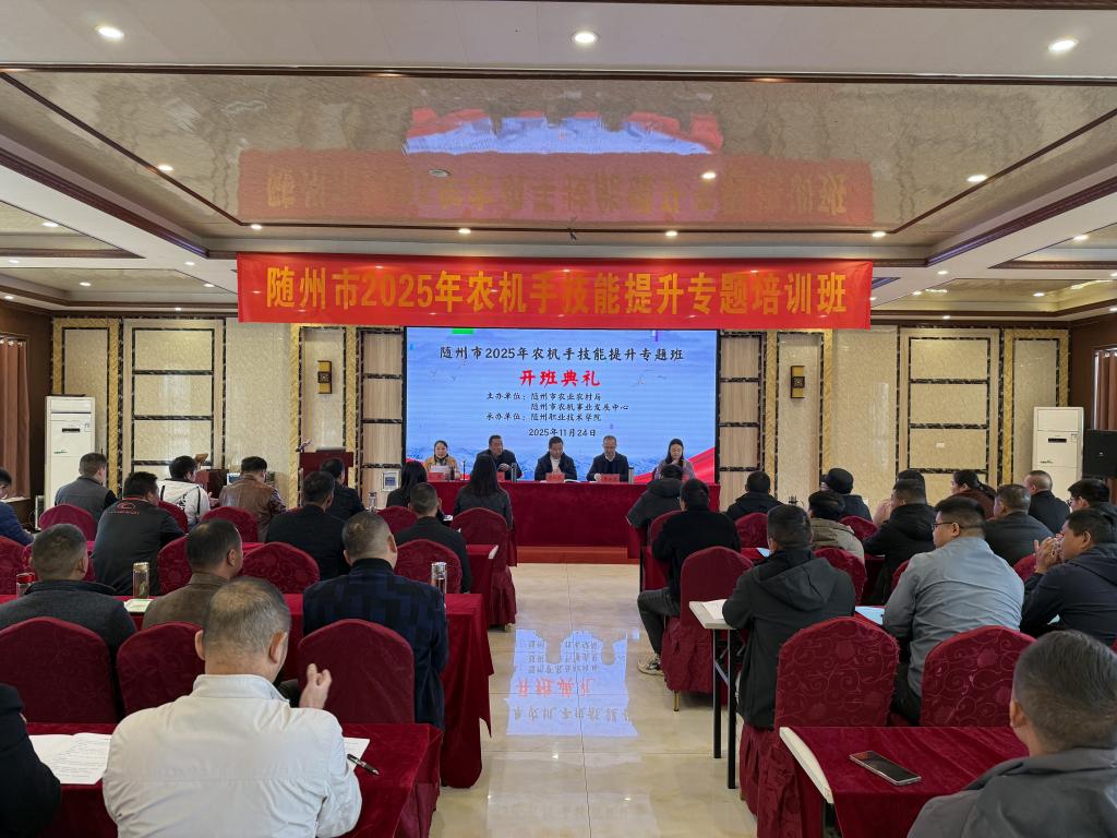 “秋冬交替谋储备,农机赋能启新程”。11月24日,由随州市农业农村局、市农机事业发展中心主办,随州职业技术学院承办的随州市2025年农机手技能提升专题培训班在广水开班。本次培训紧扣市委、市政府明确提出“打造农机化智能化示范市,培育500名懂技术、善操作、能创新的农机化科技人才”的目标,深入推进乡村人才队伍建设,将高素质农民培育工程与农机化事业发展紧密结合。